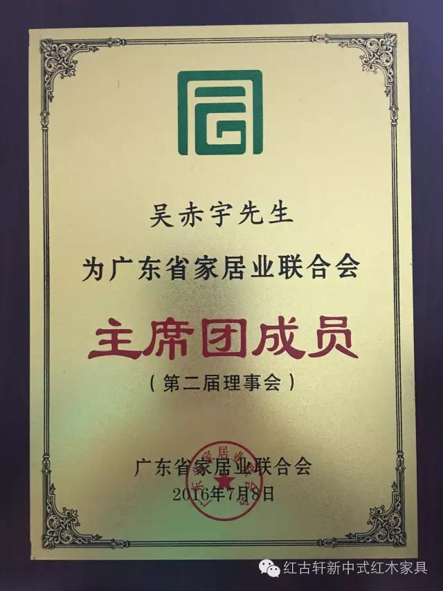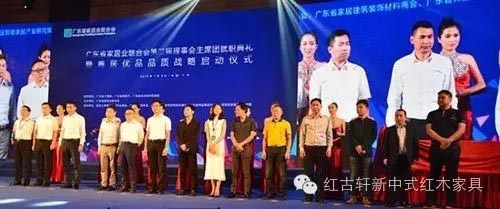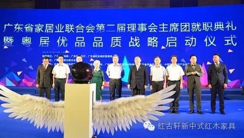 廣東省家居業(yè)聯(lián)合會(huì)第二屆會(huì)員(代表)大會(huì)、第二屆理事會(huì)主席團(tuán)就職典禮暨粵居優(yōu)品品質(zhì)戰(zhàn)略啟動(dòng)儀式于2016年7月8日16:00-21:00,在廣州香格里拉酒店隆重舉行 。此次大會(huì),中國紅木家具十大品牌、中國新中式紅木家具第一品牌,紅古軒再次當(dāng)選為廣東省家居業(yè)聯(lián)合會(huì)主席團(tuán)成員,登臺(tái)參與主席團(tuán)就職典禮。此次大會(huì)邀請(qǐng)了廣東省委、省政府領(lǐng)導(dǎo)蒞臨指導(dǎo),同時(shí)也吸引了中國家居業(yè)最具實(shí)力的工廠、家居賣場(chǎng),中國最優(yōu)秀的家居經(jīng)銷商、供應(yīng)商、知名設(shè)計(jì)機(jī)構(gòu)以及權(quán)威媒體和專家學(xué)者前來共襄盛舉。