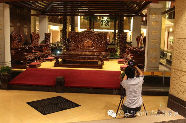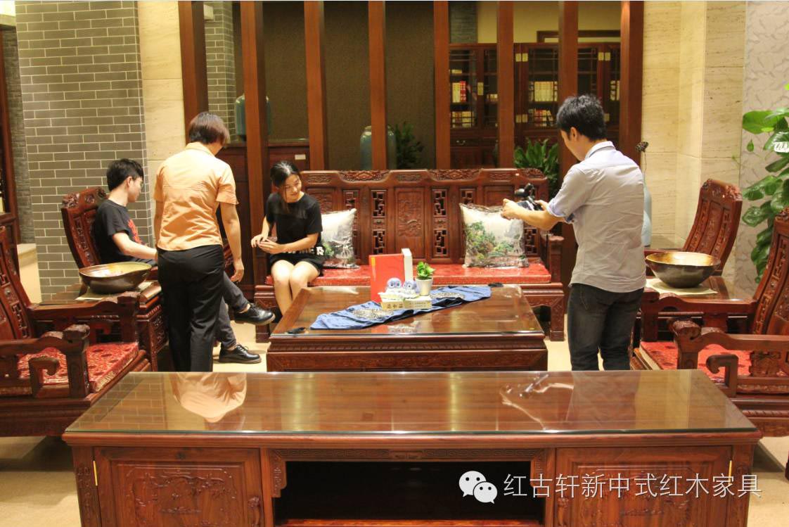 期間,攝影組分別在紅古軒紅木文化館、紅古軒“大涌鎮(zhèn)木材干燥”、紅古軒生產(chǎn)中心三地來回巡影。抵達之處,無不盛贊紅古軒品牌的規(guī)范化與精品化。其中,紅古軒的大紅酸枝、巴里黃檀、小葉紅檀喜氣十足的紅木家具,贏得了攝影師的高度盛贊,說,“90后小兩口太有眼光了!”