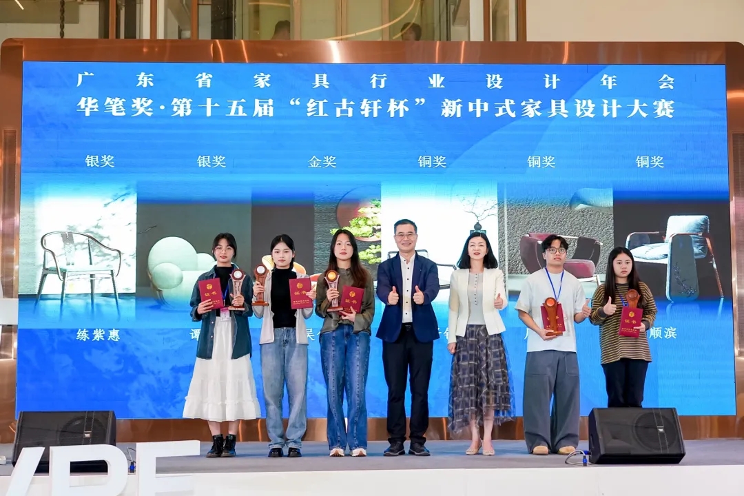 隨后,激動人心的第十五屆“紅古軒杯”新中式家具設(shè)計大賽頒獎典禮隆重舉行,廣東省家具協(xié)會會長王克、執(zhí)行會長兼秘書長張承志、紅古軒營銷總監(jiān)楊晶,共同為來自全國各地的獲獎選手頒獎。